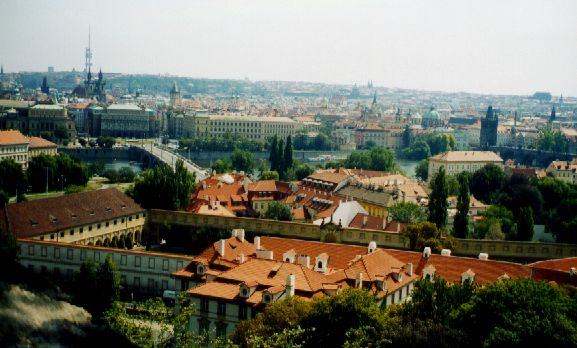 schwitzte zur Prager Burg hinauf. Von dort war die Aussicht auf Moldau mit